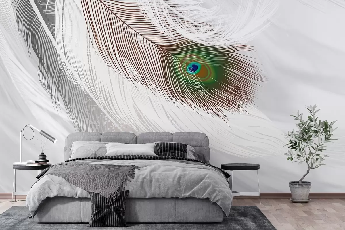 Fototapet o pană mare de păun printre pene Nr. w03961