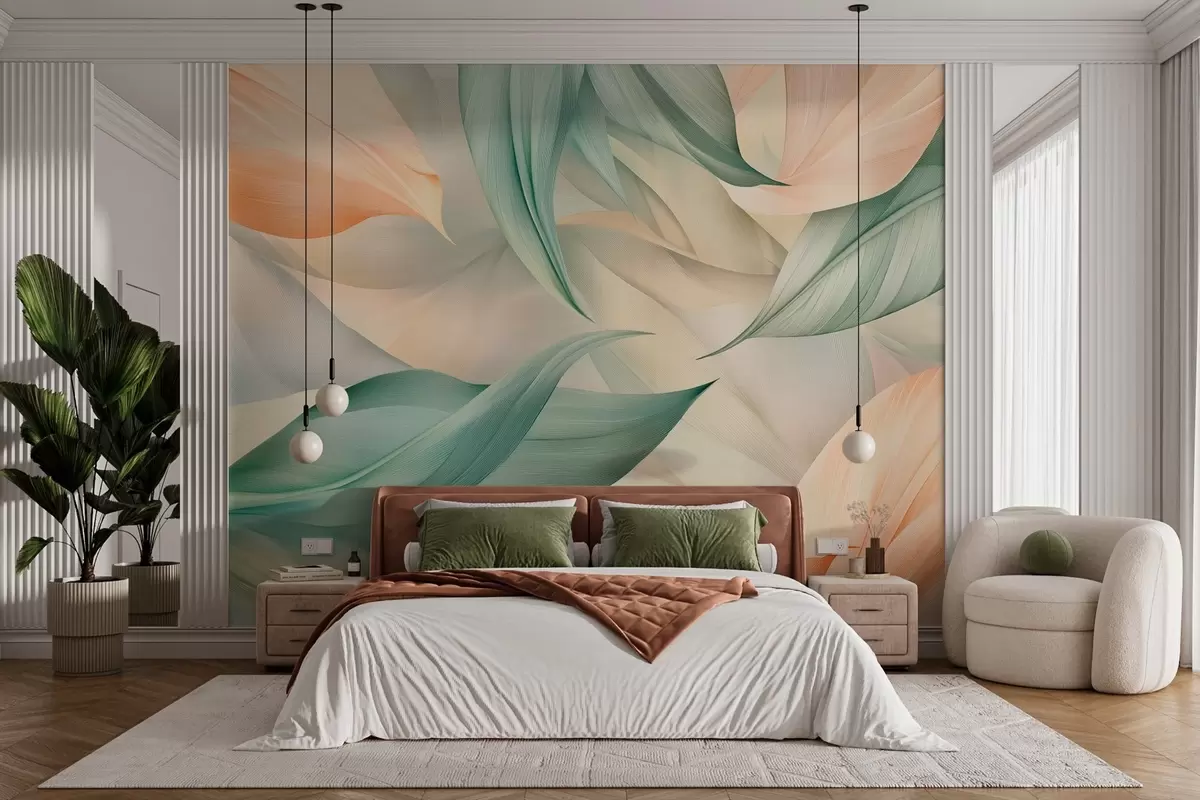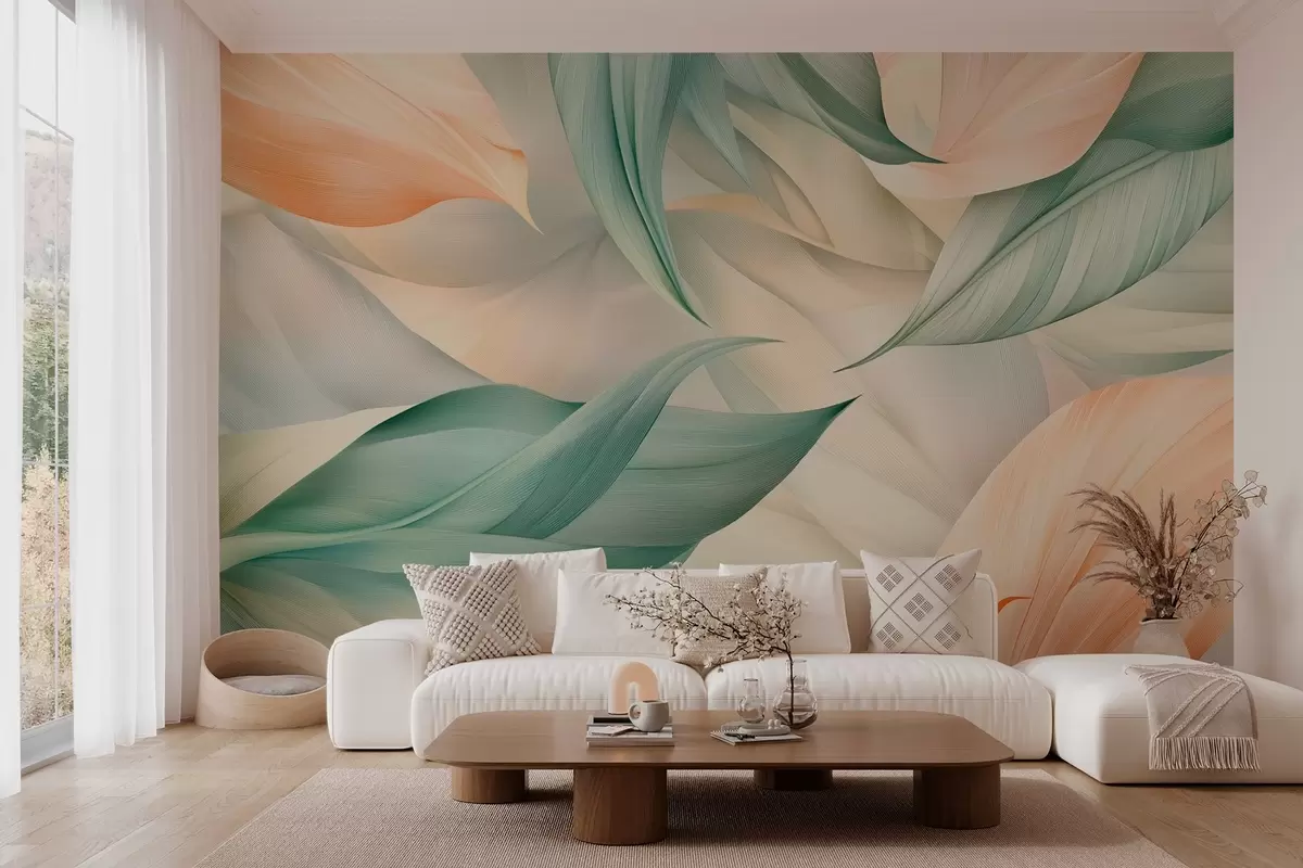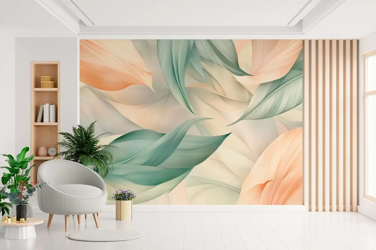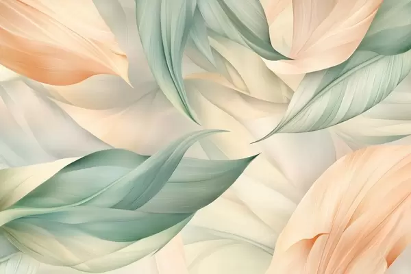Fototapet frunze tropicale exotice în tonuri delicate de piersică și verde Nr. w03962