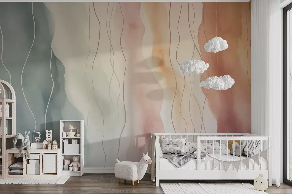Fototapet Valuri abstracte de acuarelă în culori calde și reci Nr. w03989