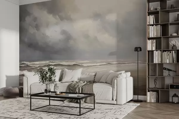 Fototapet Marea în ploaie, tonuri gri și bej, compoziție atmosferică Nr. w03998