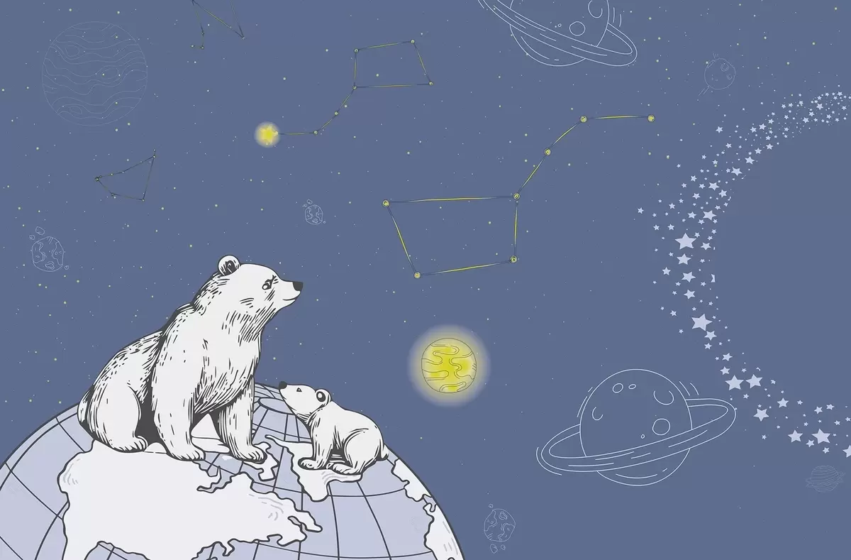Fototapet Urși și stele pe fundal albastru, astronomie de noapte Nr. w04002v1