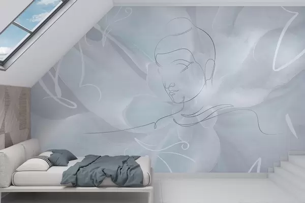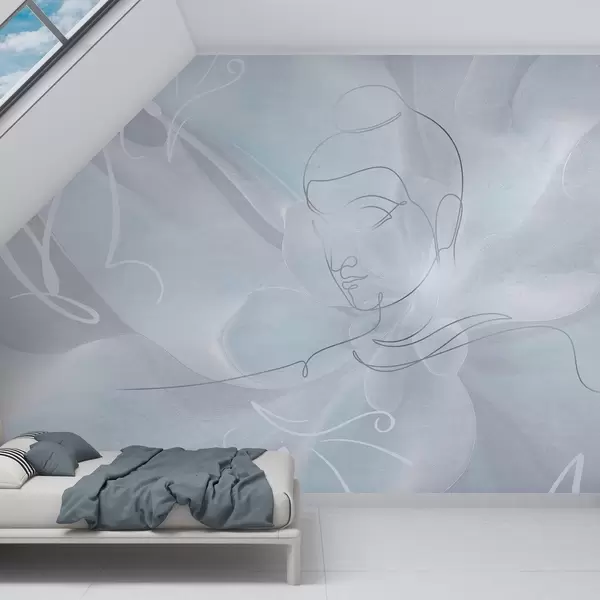 Fototapet Abstracție florală cu desen de linie Buddha, culori albastre Nr. w04004v1
