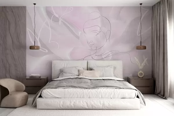 Fototapet Abstracție florală cu desen de linie Buddha, culori roz Nr. w04004v2