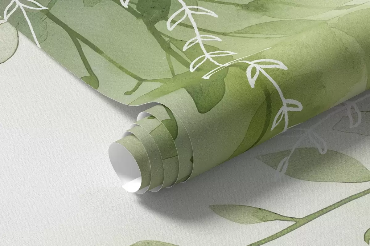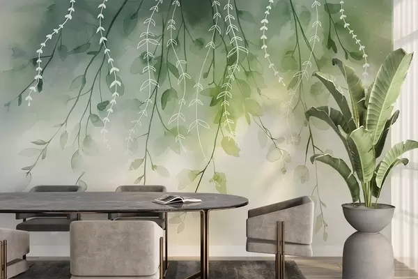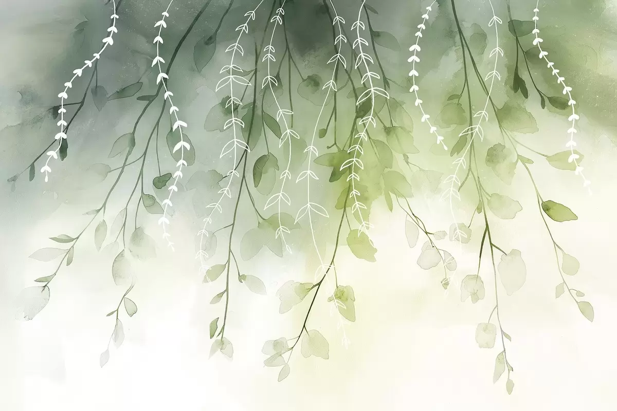 Fototapet Ramuri cu frunze în stil acuarelă, culori verzi naturale Nr. w04007