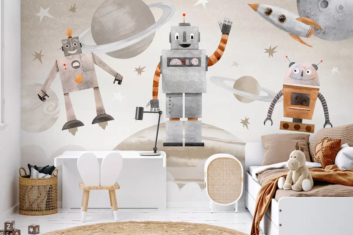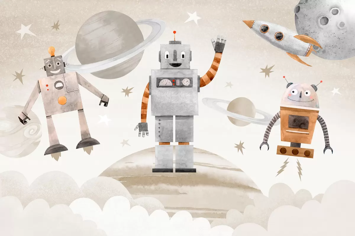Fototapet Roboți în spațiu în stil acuarelă Nr. w04016v1
