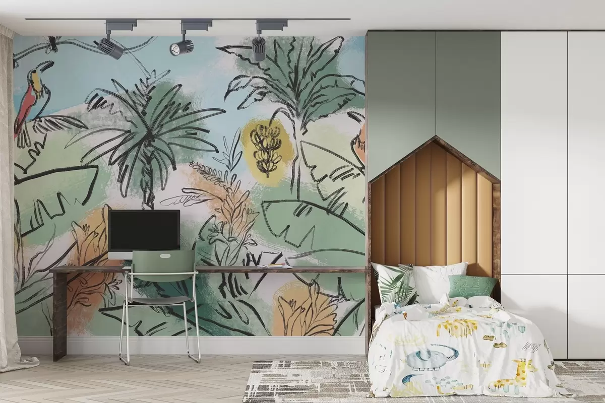 Fototapet Imprimeu tropical cu papagali, culori bogate, tropice Nr. w04019