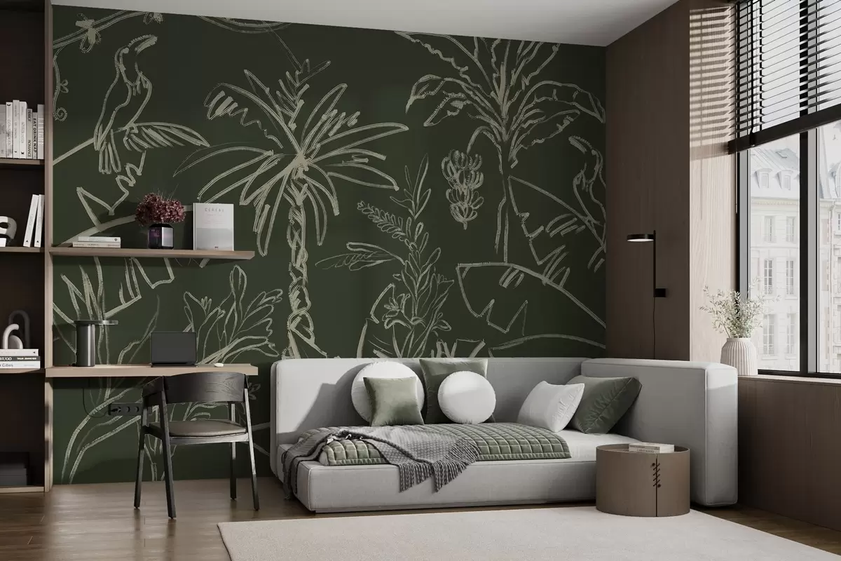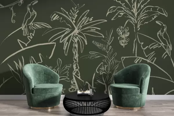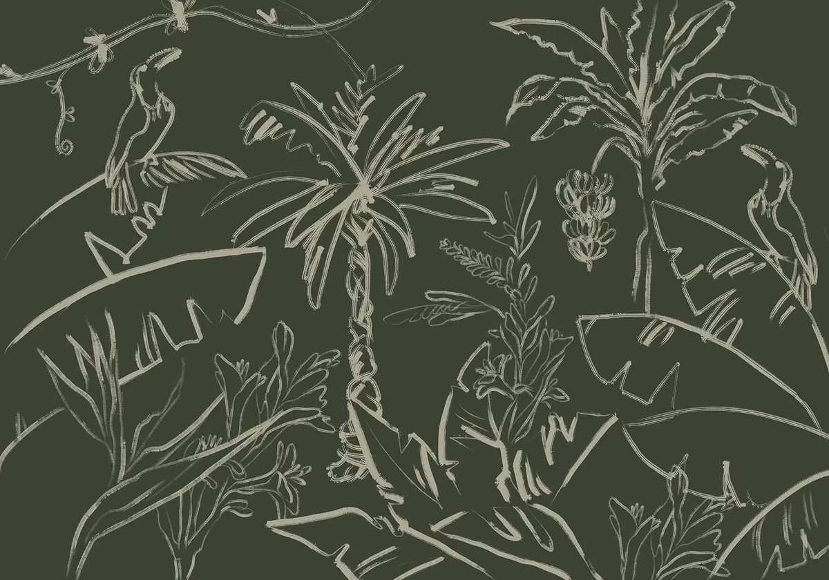 Fototapet Model tropical pe fundal verde închis, palmieri, banane Nr. w04020v5