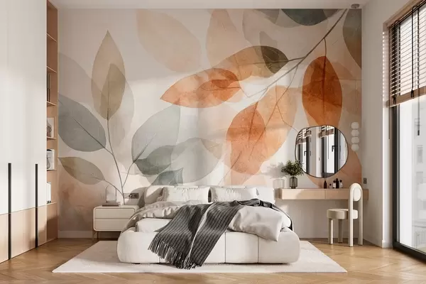 Fototapet frunze în stil acuarelă în nuanțe de sepia și gri Nr. w04024