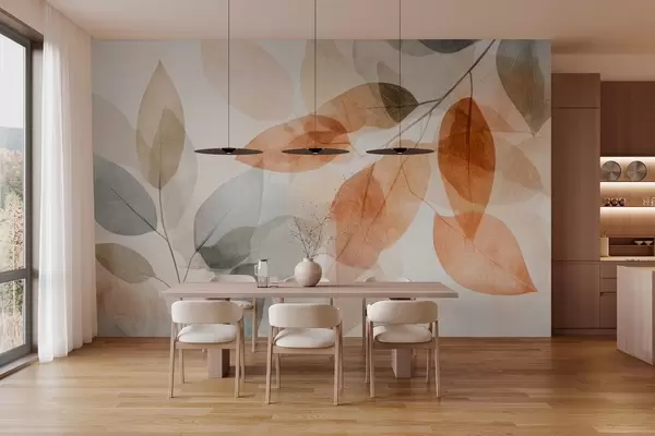 Fototapet frunze în stil acuarelă în nuanțe de sepia și gri Nr. w04024