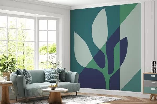 Fototapet plantă grafică abstractă pe fundal de geometrie în tonuri de albastru Nr. w04028v1