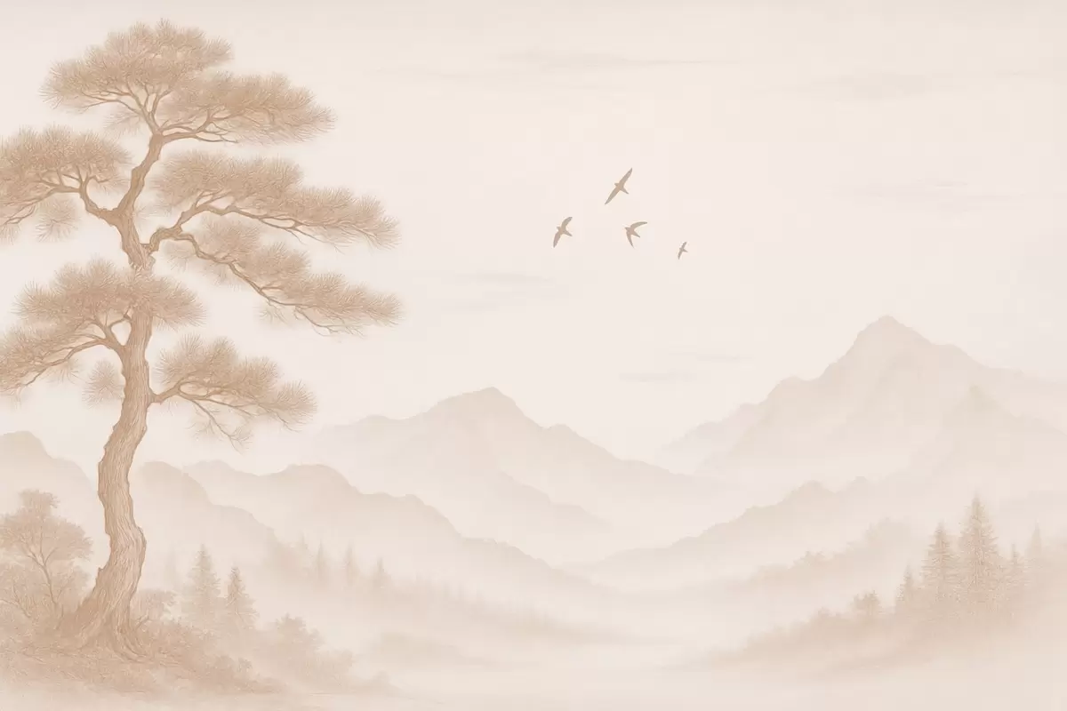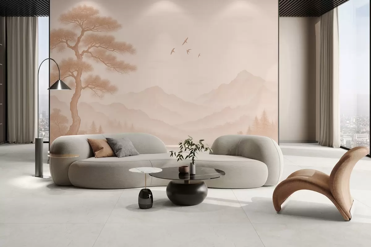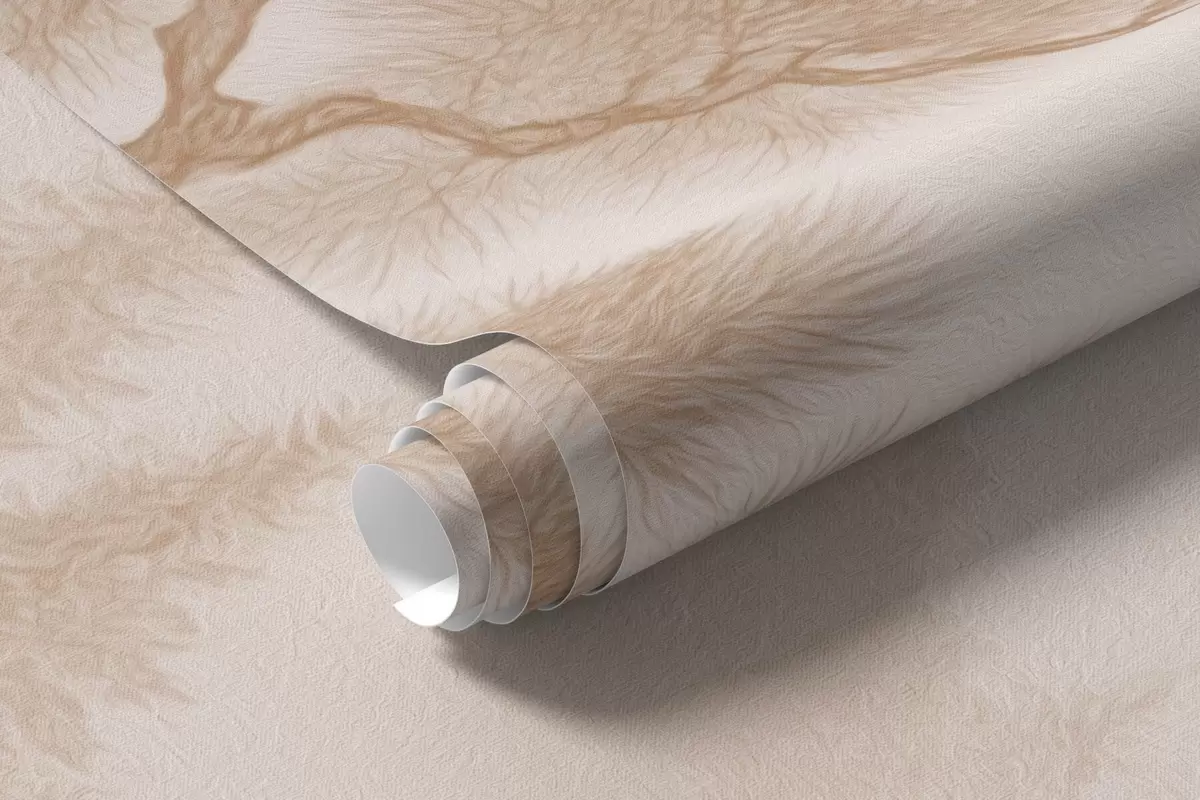 Fototapet panorama de dealuri cu un copac mare în nuanțe de mocha Nr. w04033v1