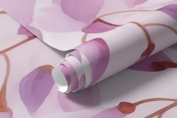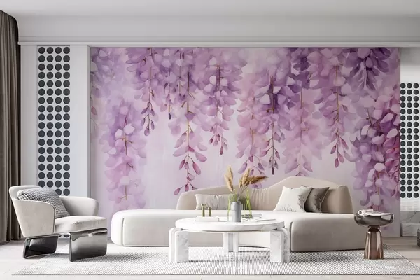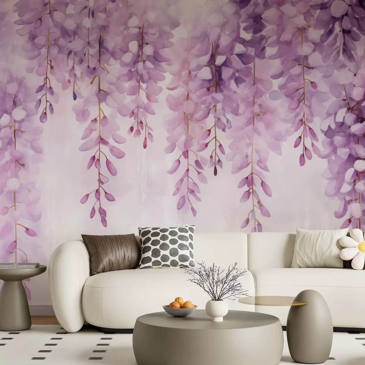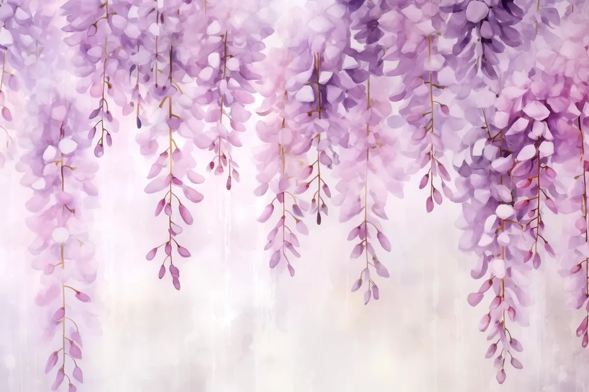 Fototapet Compoziție delicată de acuarelă cu glicină în cascadă în tonuri moi de lavandă și roz, creând o atmosferă liniștită, Nr. w04034