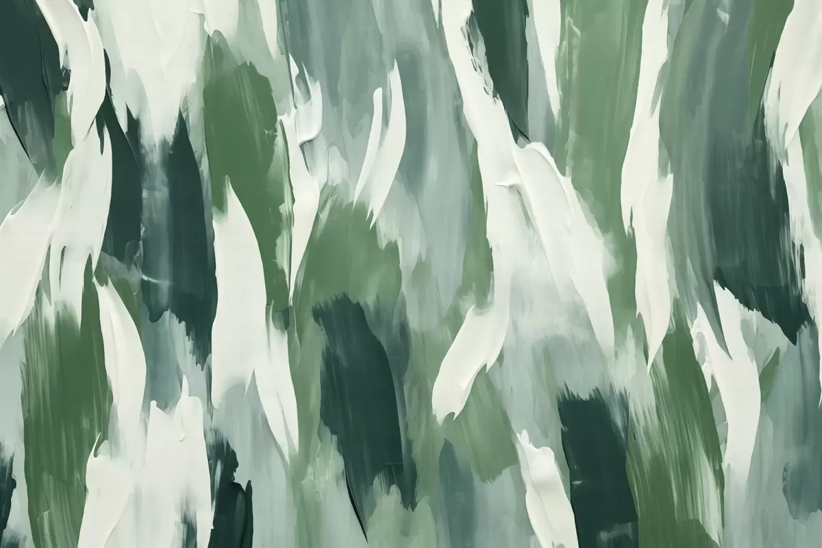 Fototapet Textura abstractă a tușelor îndrăznețe verzi și crem, evocând ritmul frunzelor suflate de vânt și mișcarea organică Nr. w04035