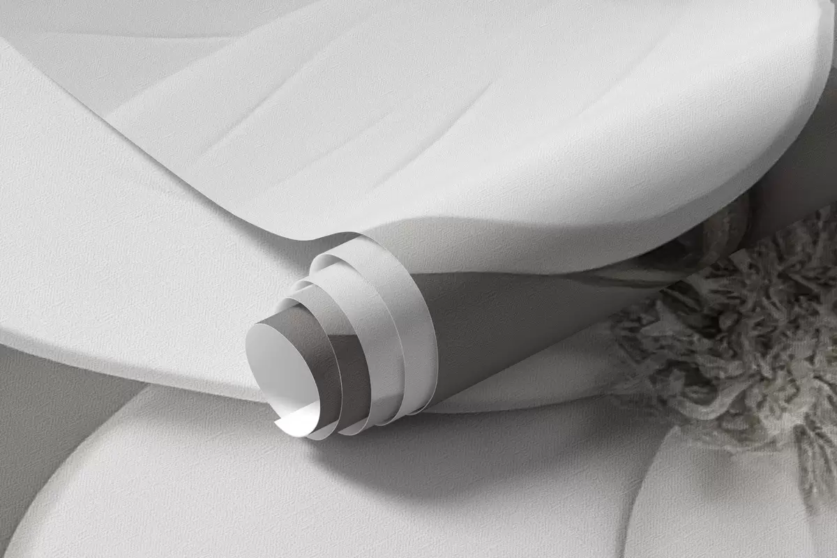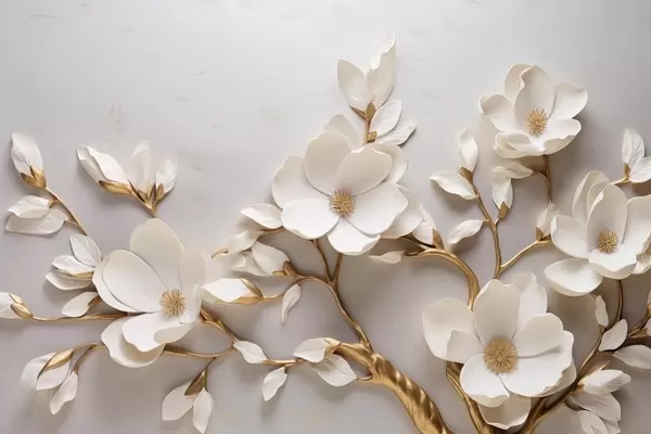 Fototapet Ramură florală dimensională în alb pur și tonuri neutre Nr. w04039v2