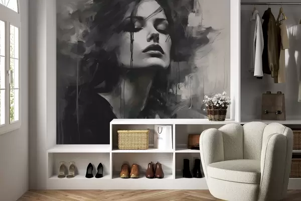 Fototapet Portret de femeie în haine gri și negre Nr. w04049