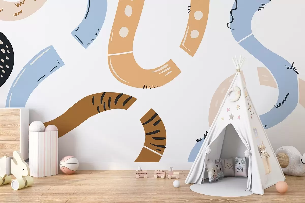 Fototapet Desene abstracte, juvenile, mâzgăleli, maro, albastru, roz Nr. w04066