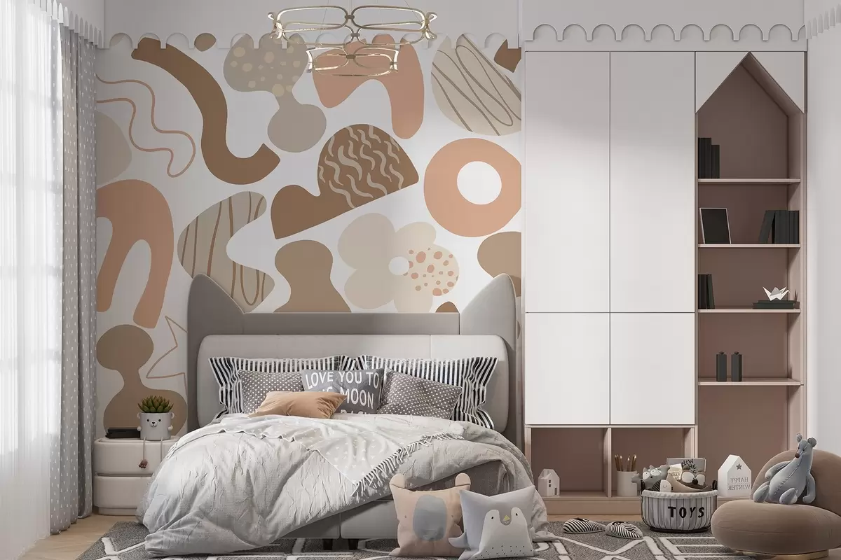 Fototapet Figuri geometrice cu mâzgăleli desen, juvenil, paleta de culori bej Nr. w04068