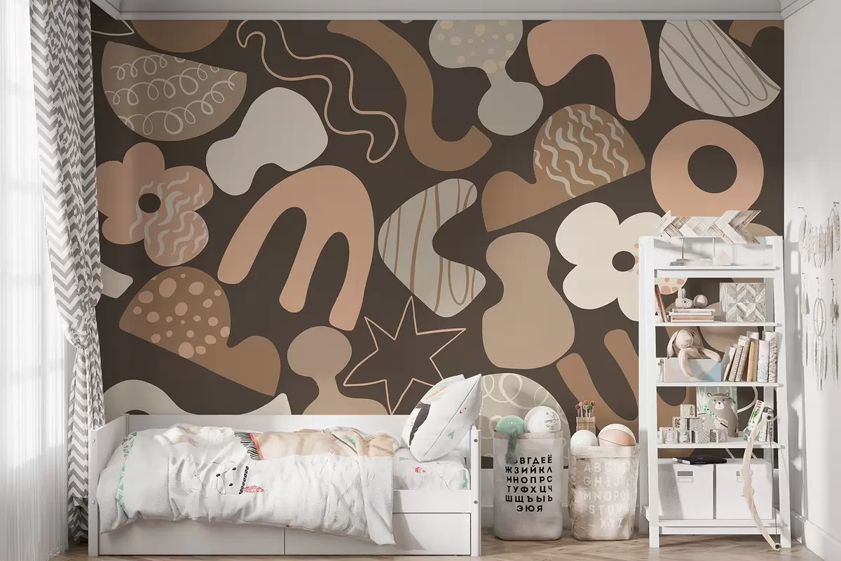 Fototapet Figuri geometrice cu desen doodles, juvenile, fundal bej închis Nr. w04068v1