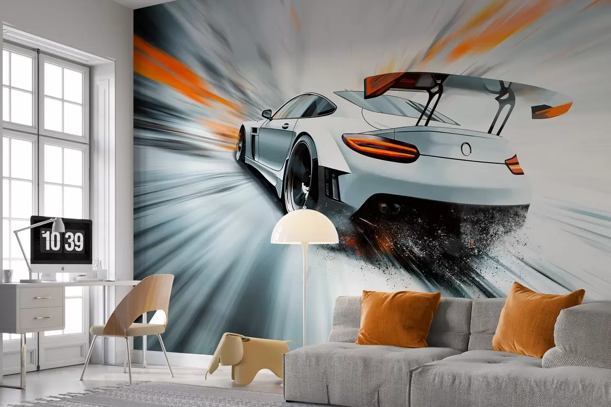 Fototapet o mașină sport dinamică care trece în viteză prin spațiu Nr. w04074