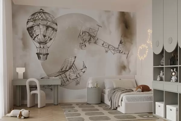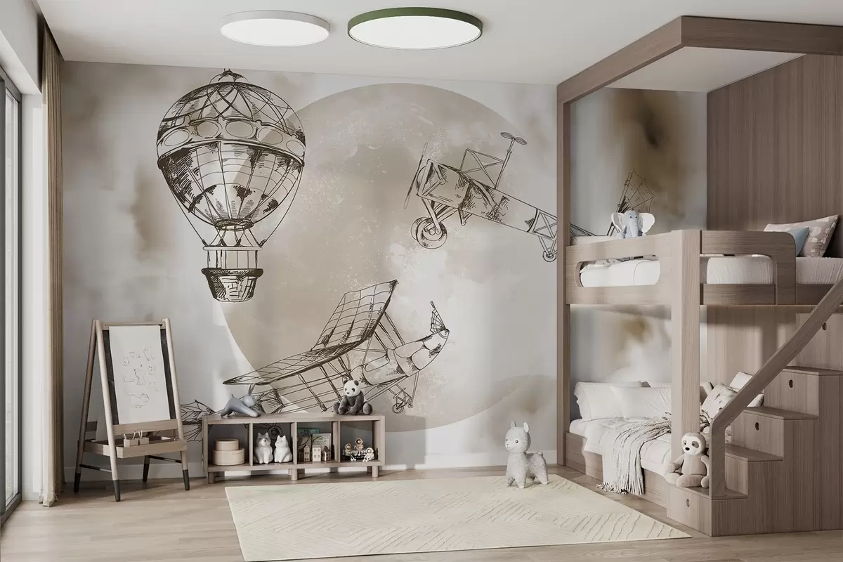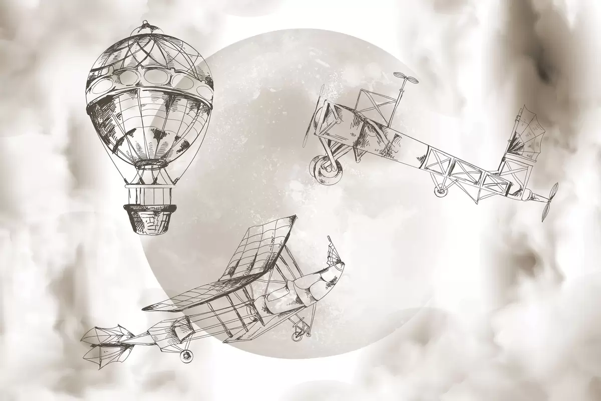 Fototapet Avioane retro pe fundalul lunii și al norilor Nr. w04085v1