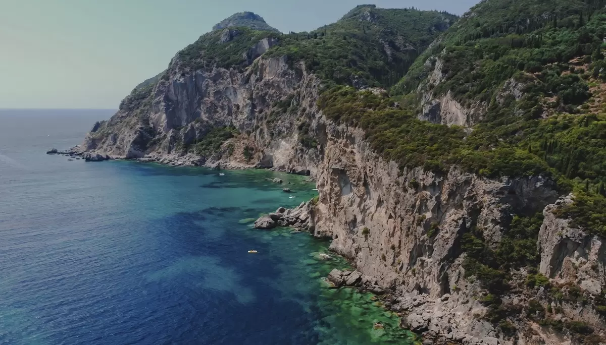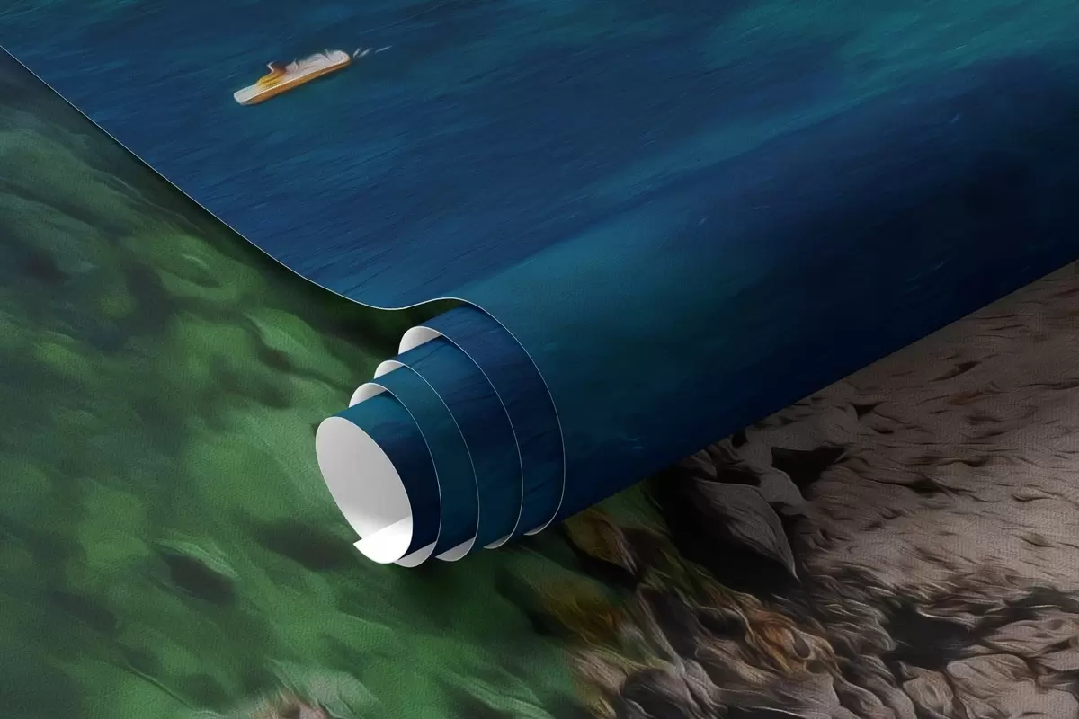 Fototapet Munți stâncoși lângă mare, desen în stil ulei, apă acvamarin Nr. w04096
