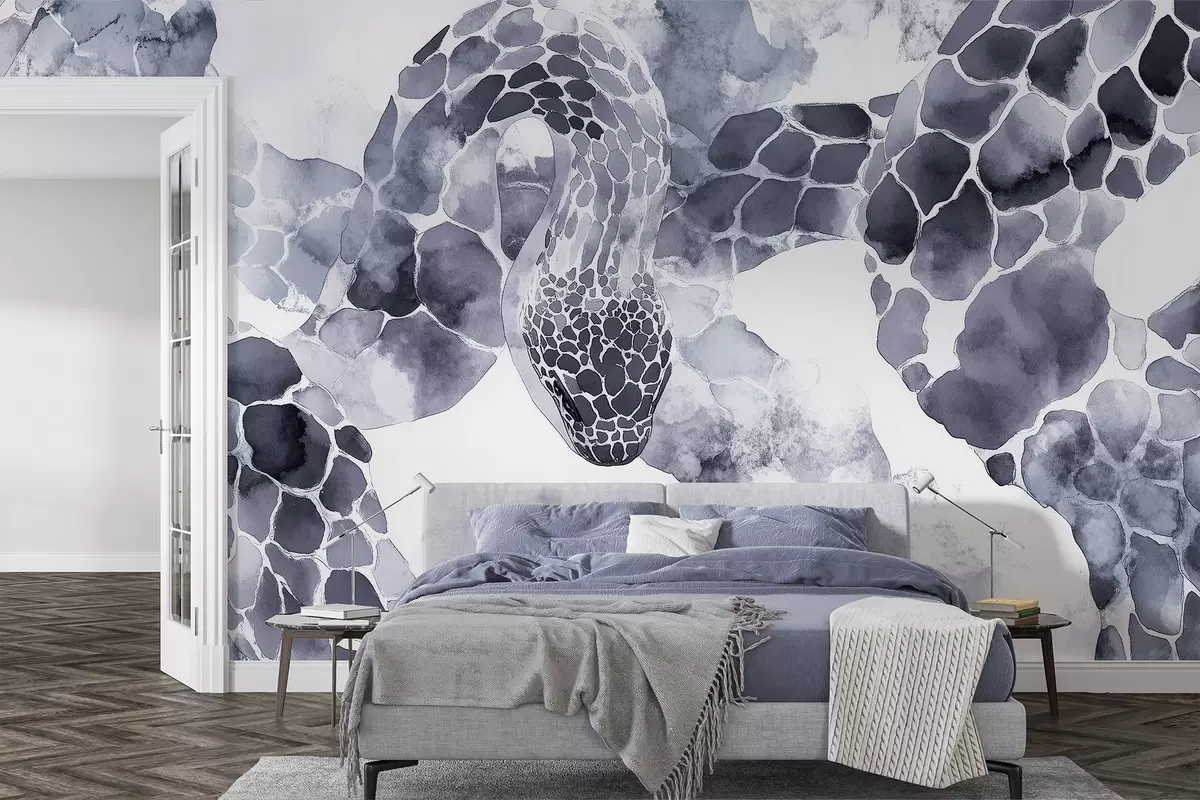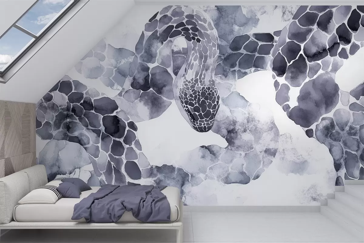 Fototapet Siluetă șarpe, stil acuarelă, culori albastre Nr. w04113