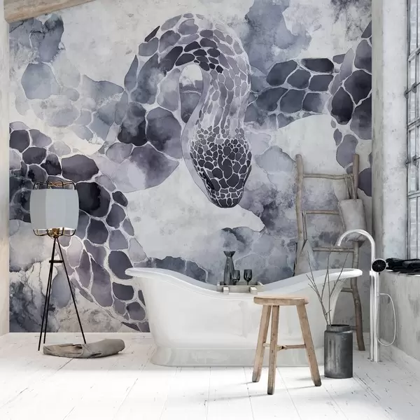 Fototapet Siluetă șarpe, stil acuarelă, culori albastre Nr. w04113
