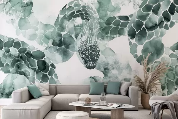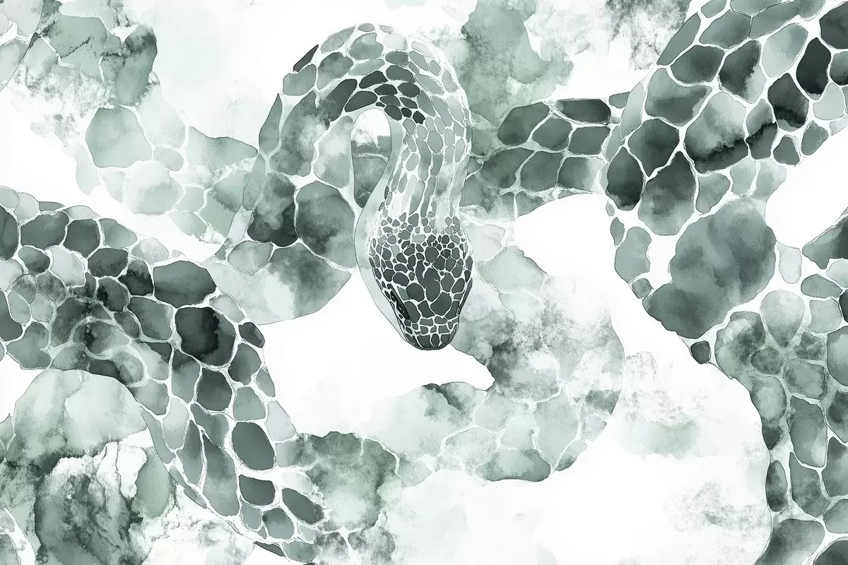 Fototapet Siluetă șarpe, stil acuarelă, culori verzi Nr. w04113v2