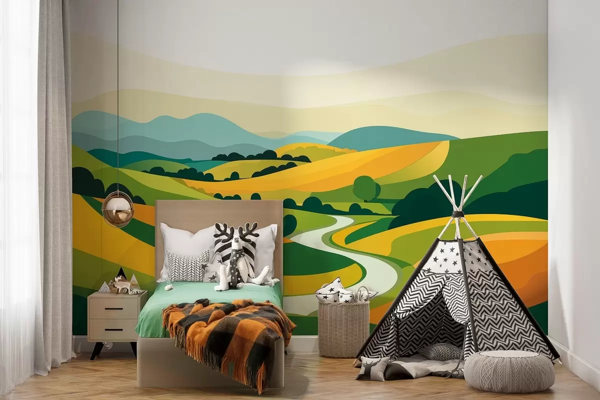 Fototapet Peisaj abstract cu dealuri și copaci, culori vii Nr. w04116