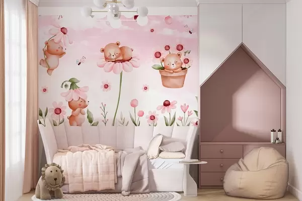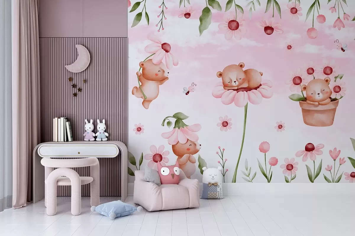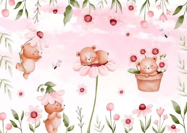 Fototapet Ursuleți cu flori, animale de basm Nr. w04143