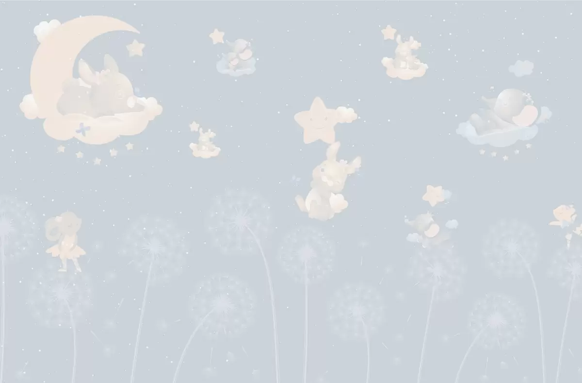 Fototapet Basm de noapte cu iepure, stele și păpădii roz Nr. w04195v1
