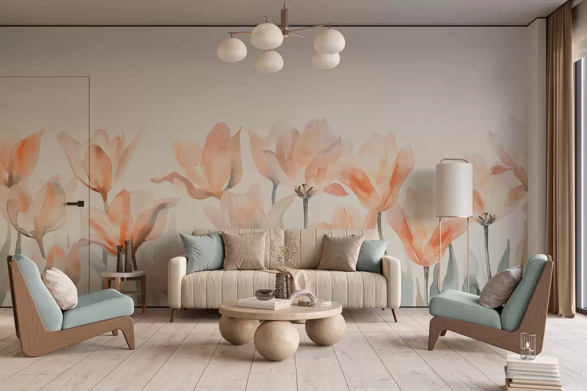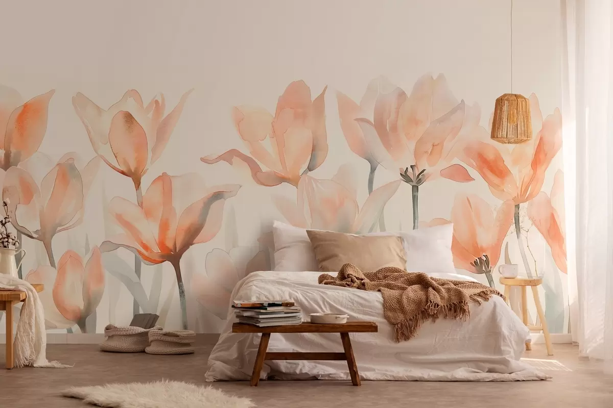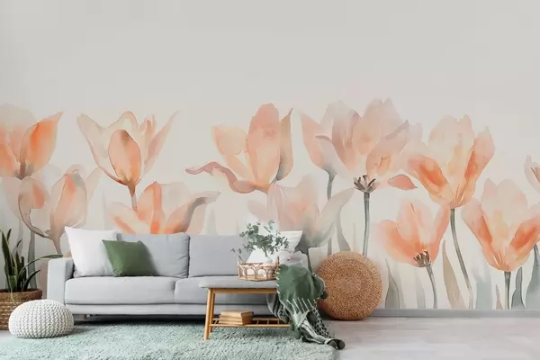 Fototapet lalele proaspete de acuarelă care cresc de jos Nr. w04204