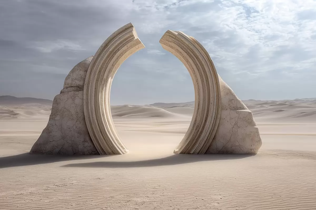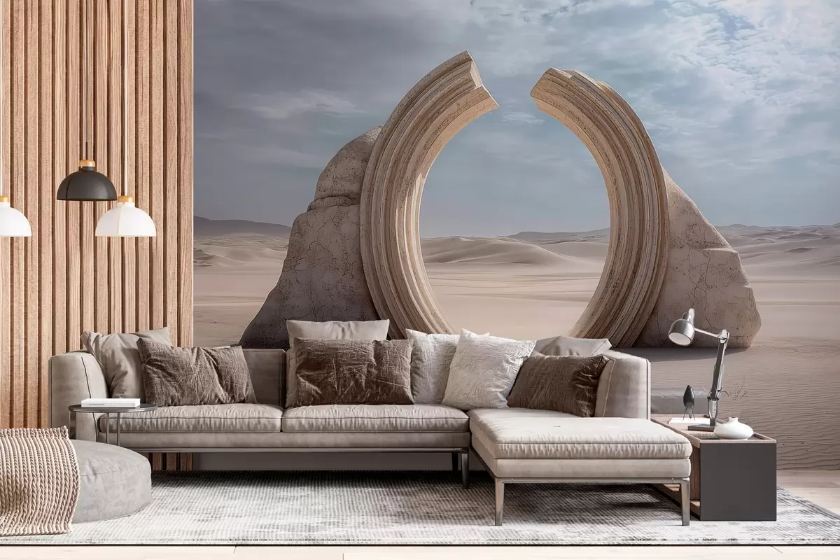 Fototapet peisaj deșertic suprarealist cu o arcadă arhitecturală mare Nr. w04284