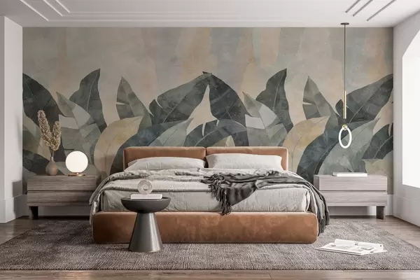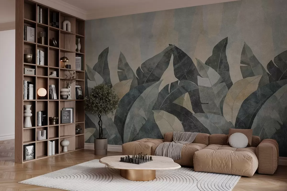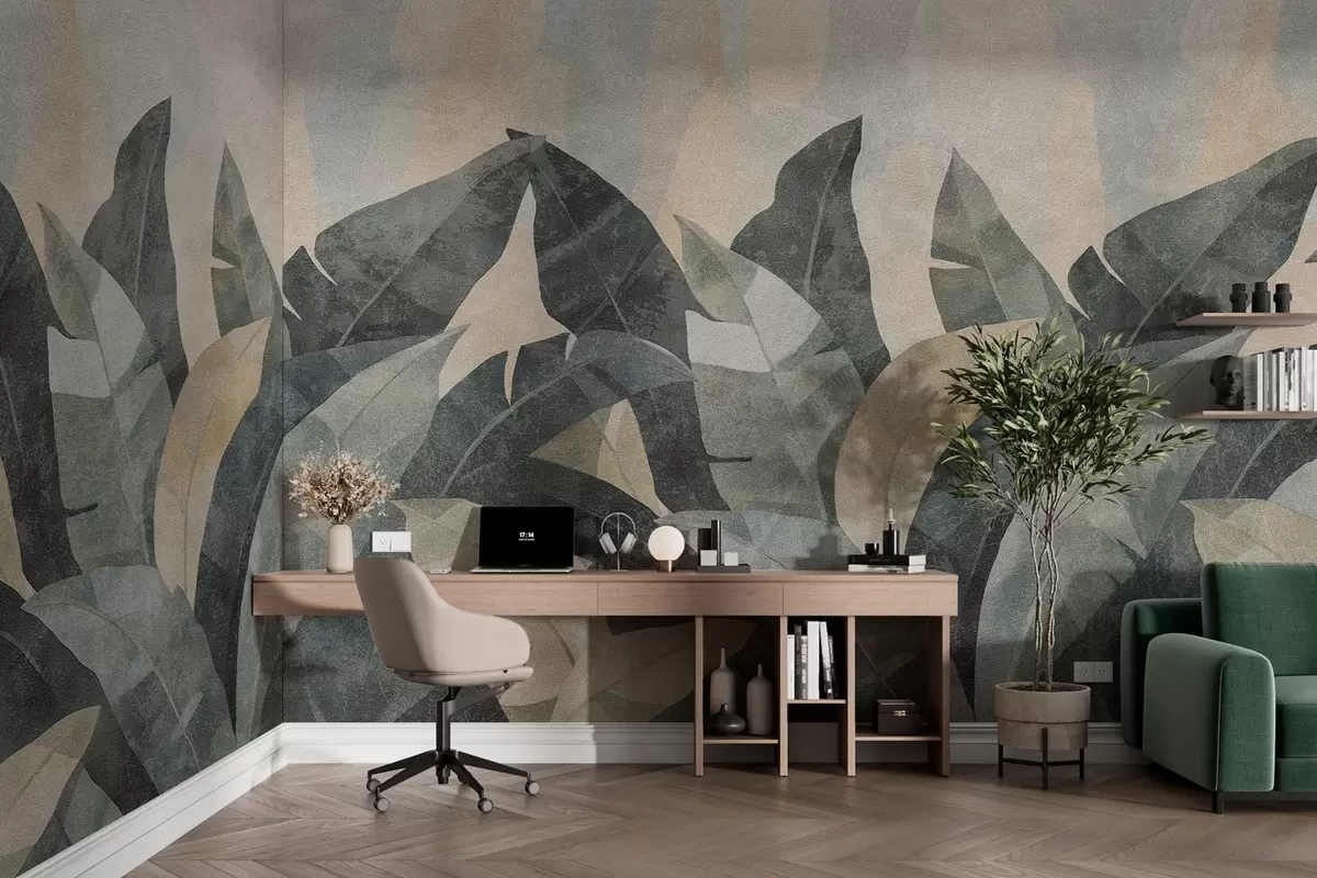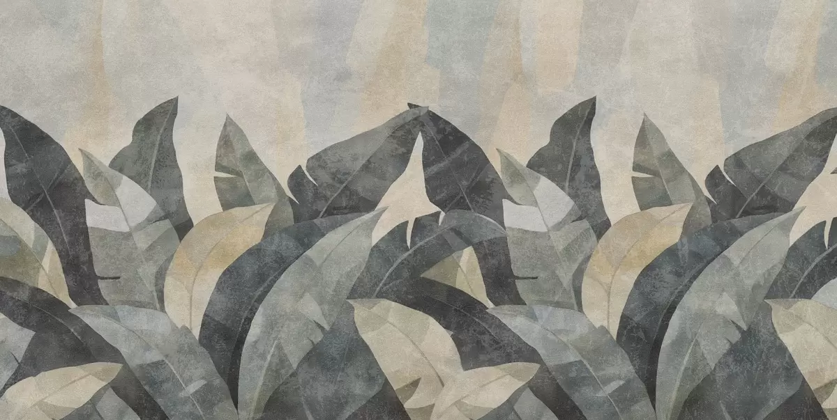 Fototapet frunze de bananier texturate în nuanțe naturale de bej, verde și gri Nr. w04285