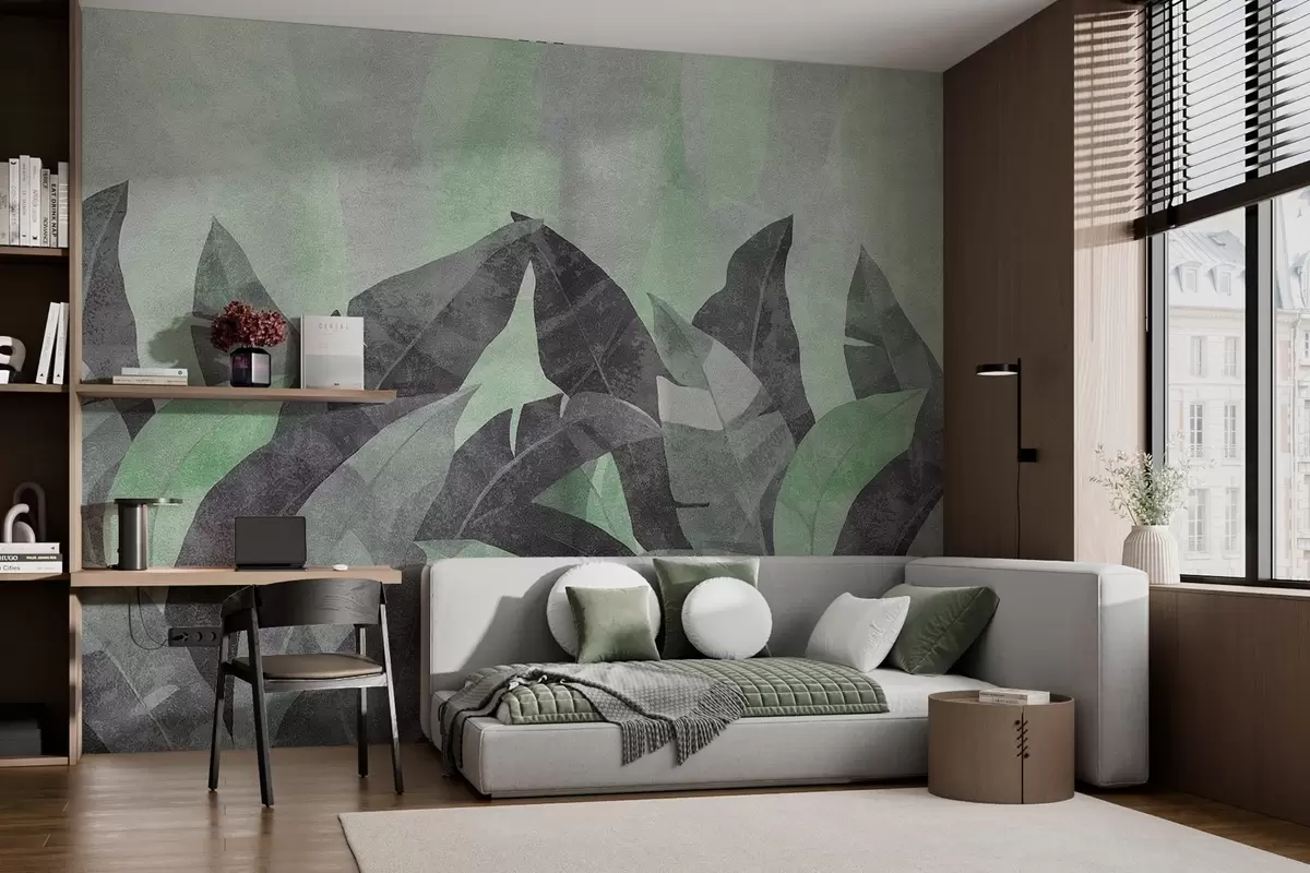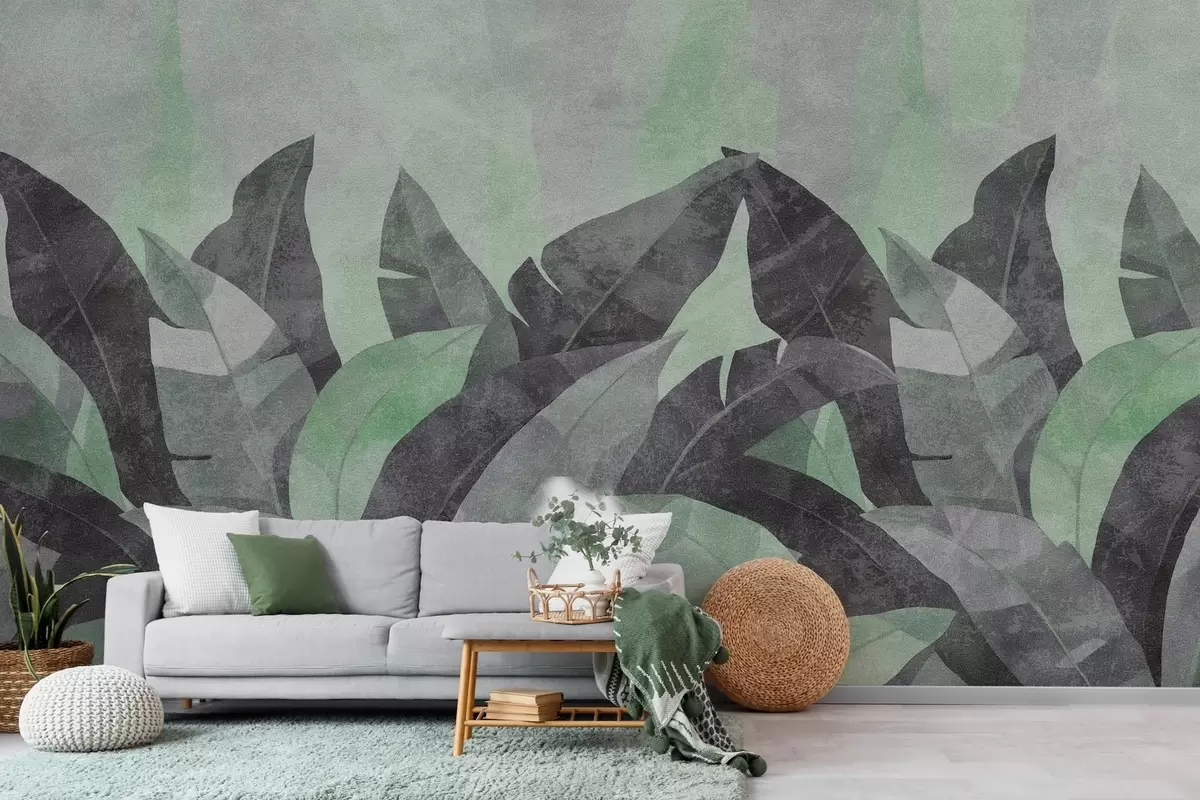 Fototapet frunze de banane texturate în nuanțe de verde și gri Nr. w04285v1