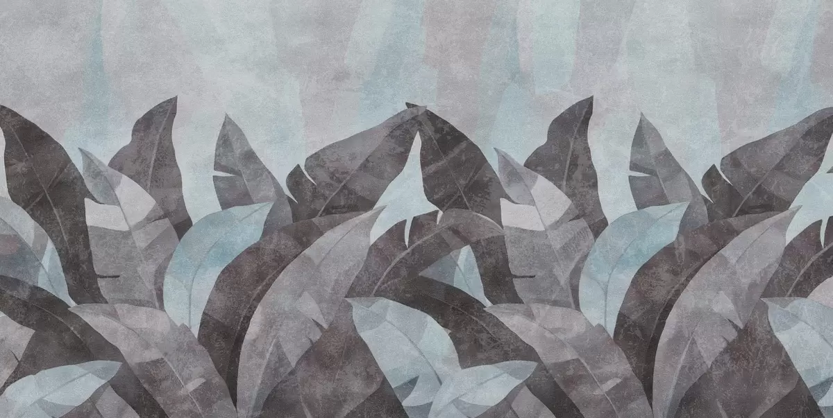 Fototapet frunze de banane texturate în nuanțe de albastru și gri Nr. w04285v2
