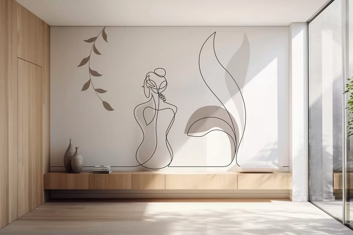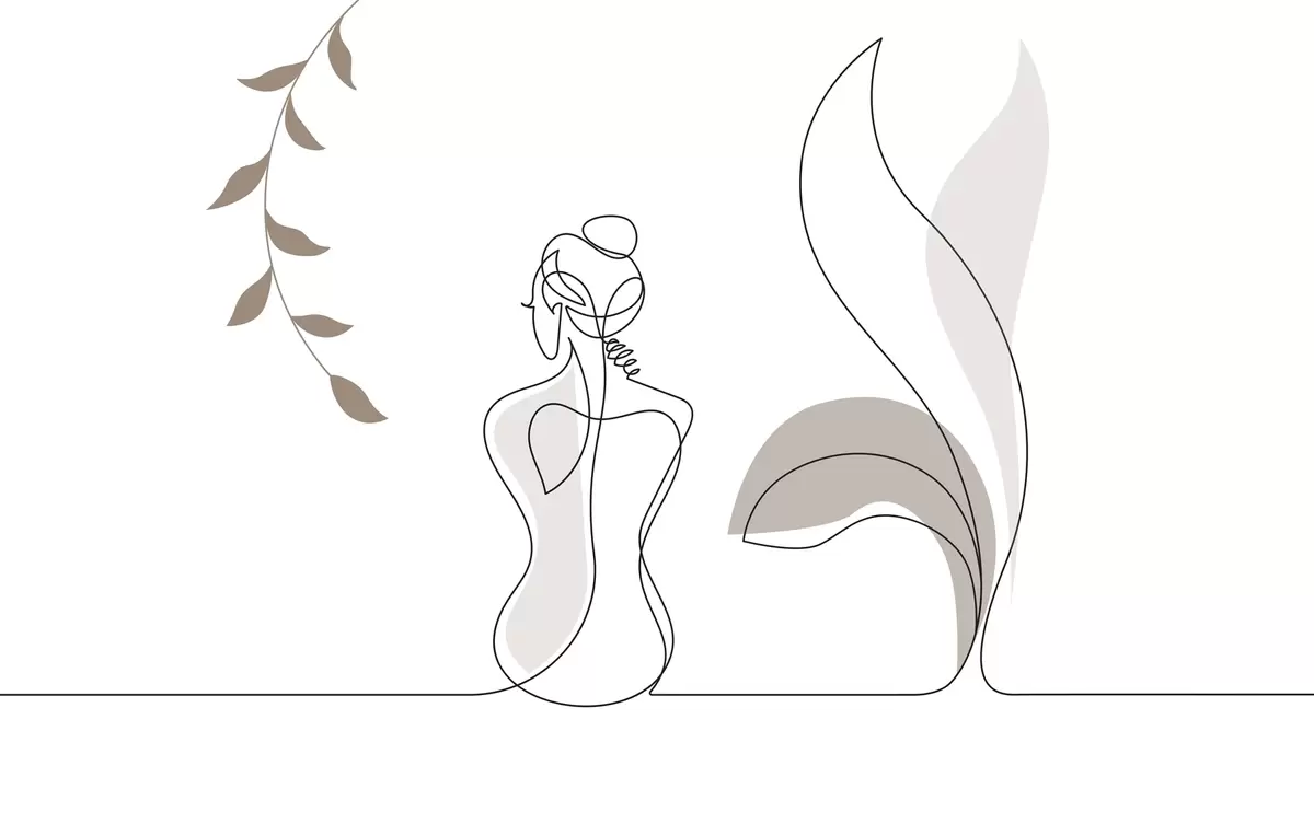 Fototapet silueta liniară a unei femei și frunze Nr. w04303