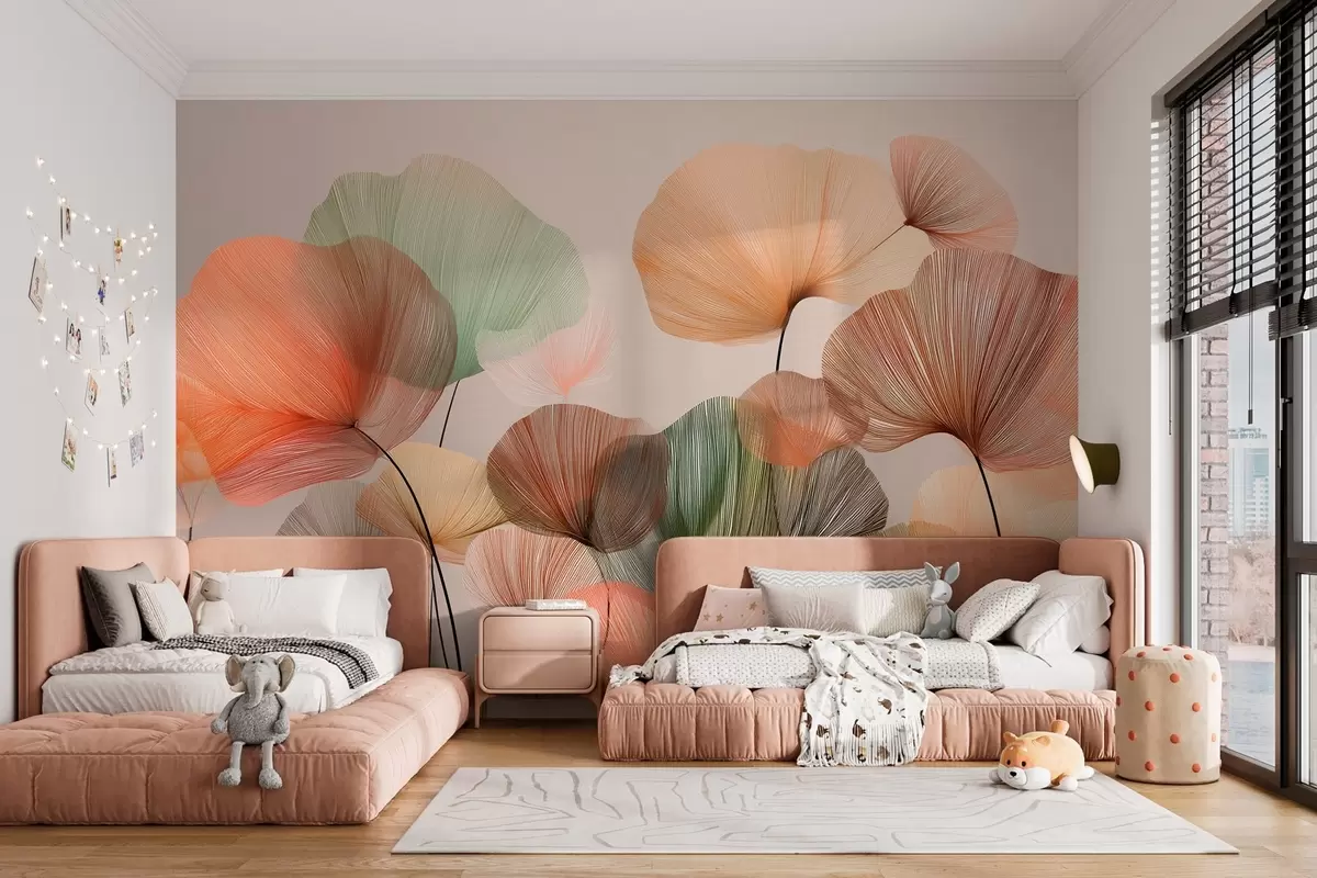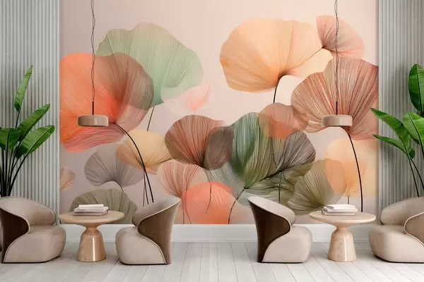 fototapet frunze de ginkgo multicolore cu vene w04305