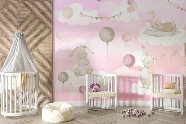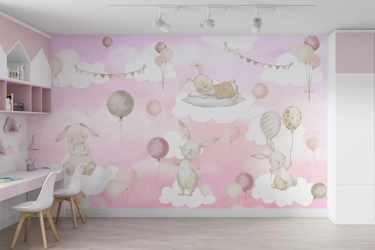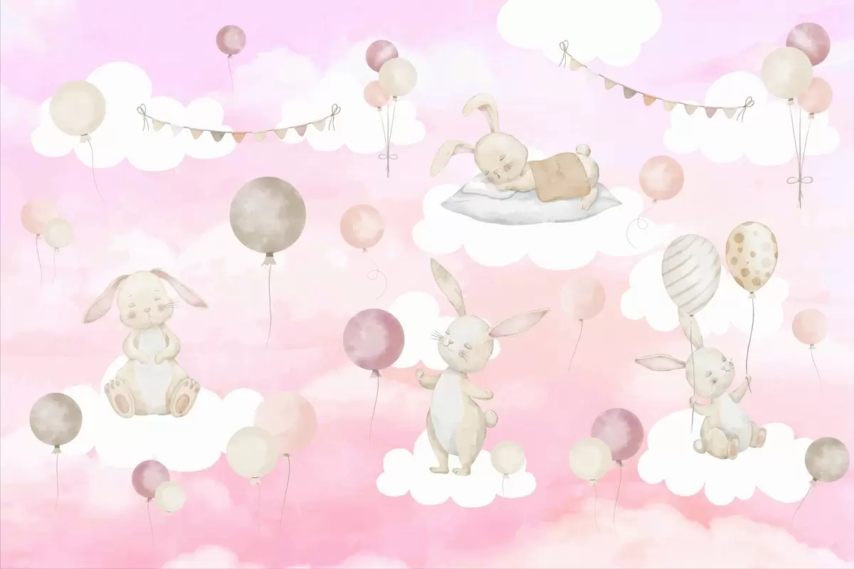 Fototapet Iepuri cu baloane pe nori Nr. w04337v1