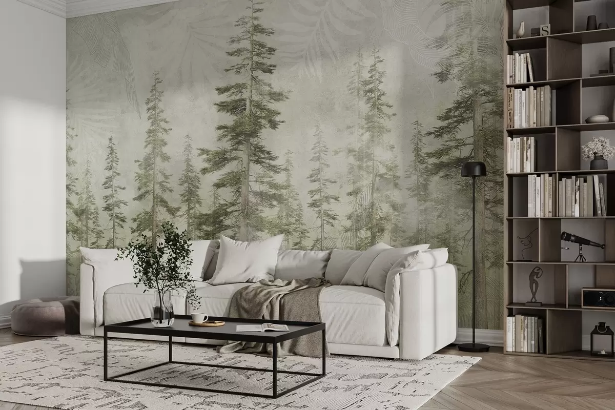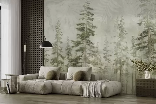 Fototapet Pădure de pini cu textură de hârtie de epocă și modele fine Nr. w04342