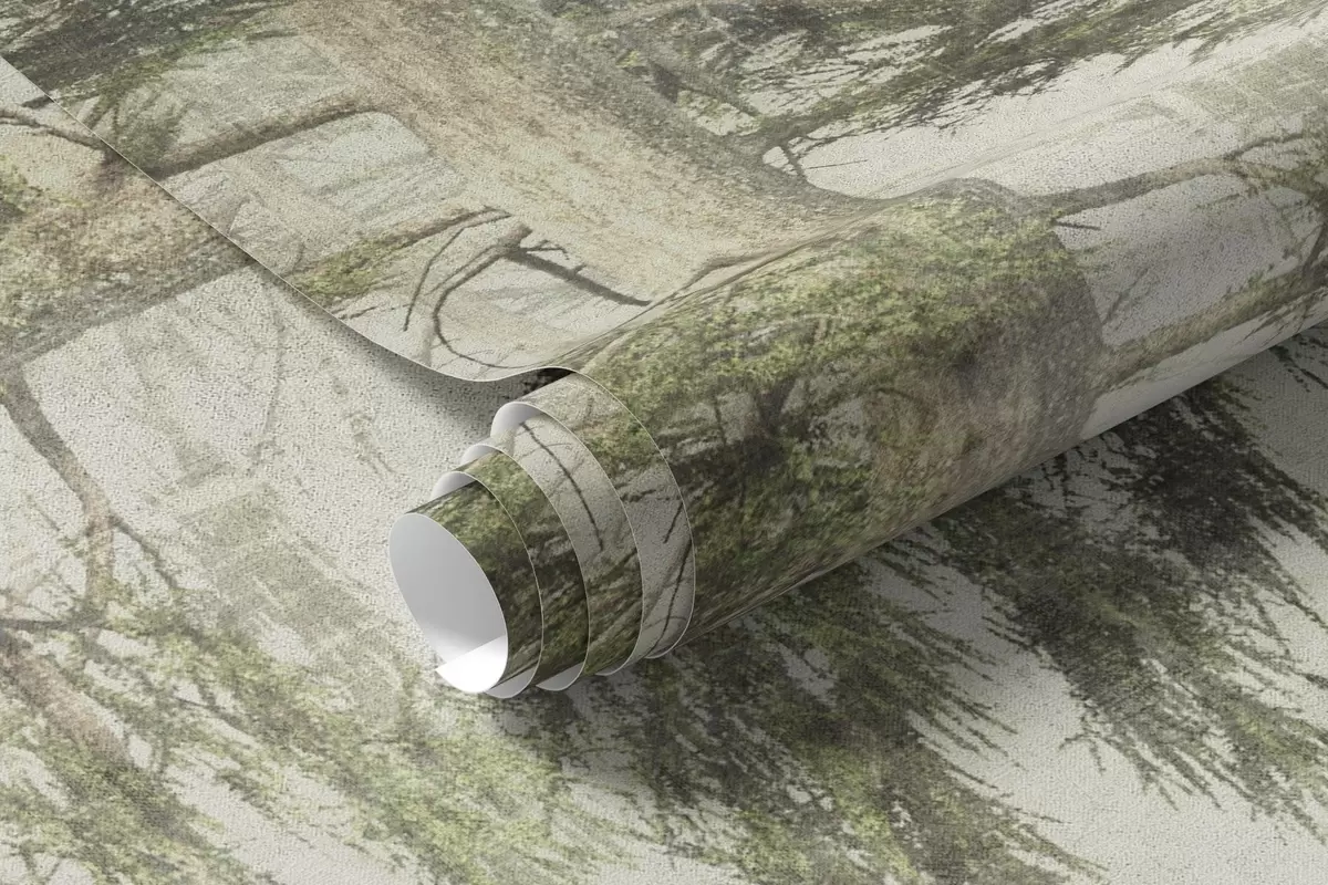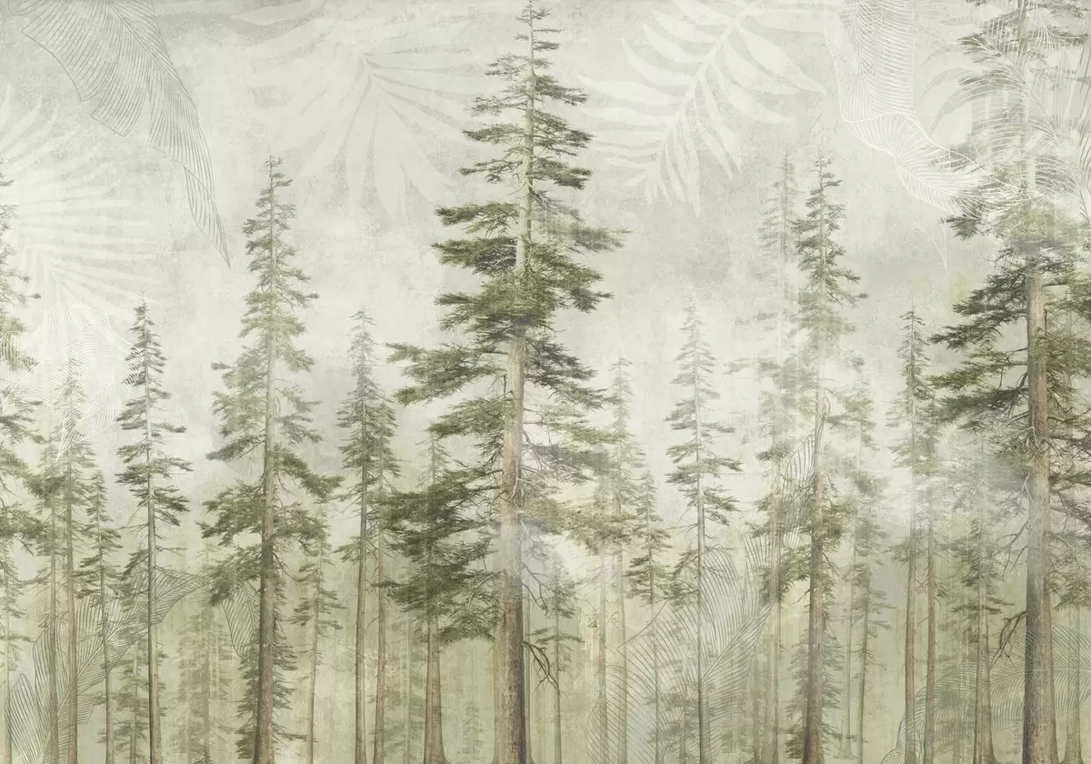 Fototapet Pădure de pini cu textură de hârtie de epocă și modele fine Nr. w04342