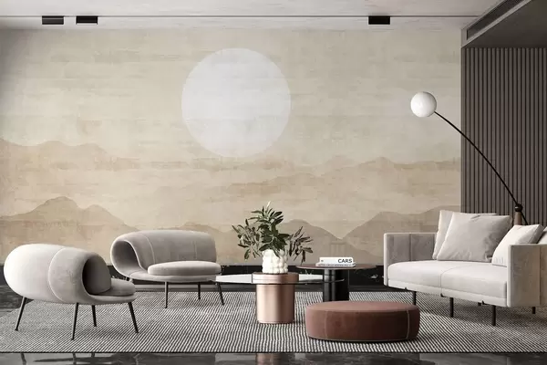 Fototapet Minimalist peisaj montan cu soare alb mare Nr. w04345