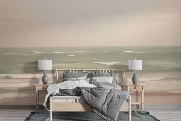 Fototapet Peisaj marin moale roz-verde cu valuri blânde Nr. w04348