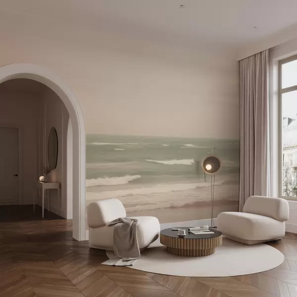 Fototapet Peisaj marin moale roz-verde cu valuri blânde Nr. w04348
