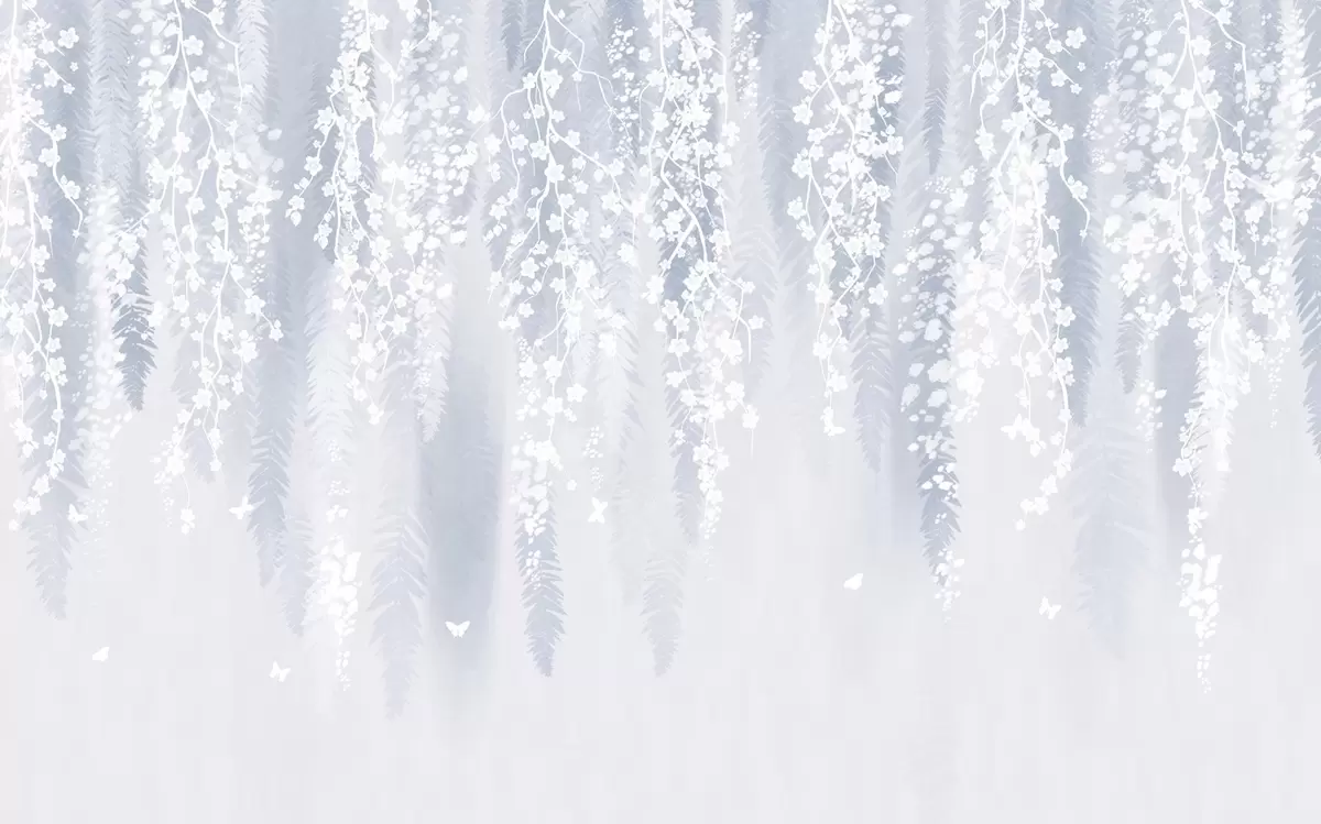 Fototapet Versiune albastră rece a ramurilor cu flori albe Nr. w04417v2