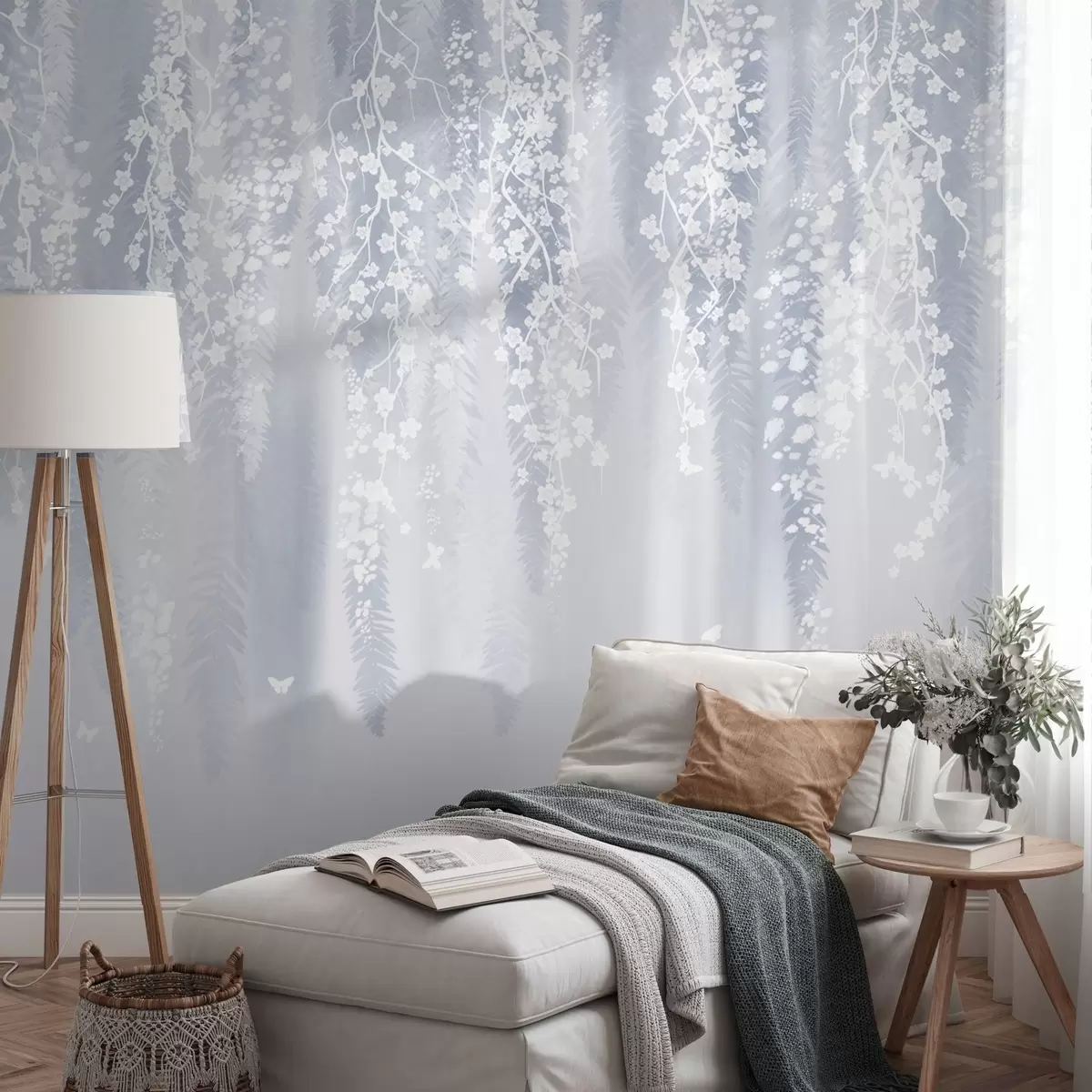 Fototapet Versiune albastră rece a ramurilor cu flori albe Nr. w04417v2