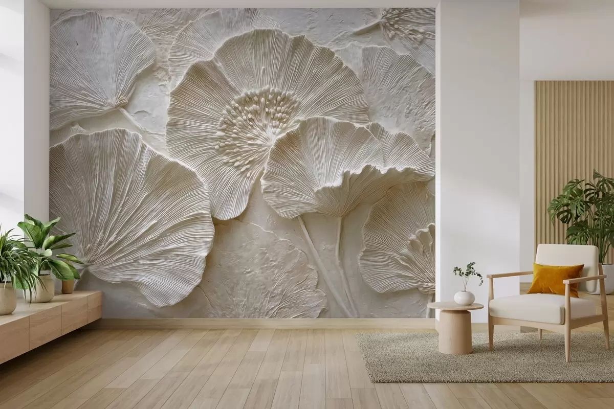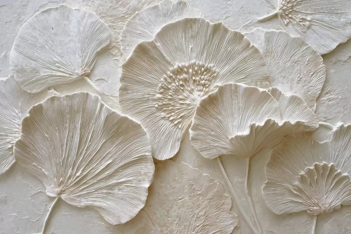 Fototapet Frunze voluminoase de ginkgo într-un stil ușor în relief Nr. w04444