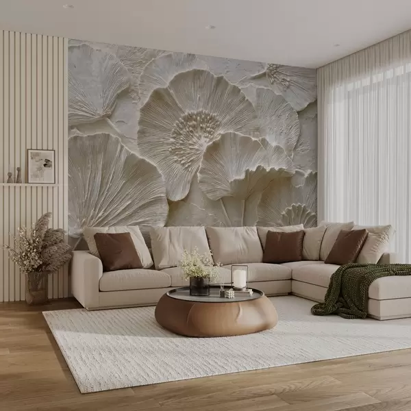 Fototapet Frunze voluminoase de ginkgo într-un stil ușor în relief Nr. w04444
