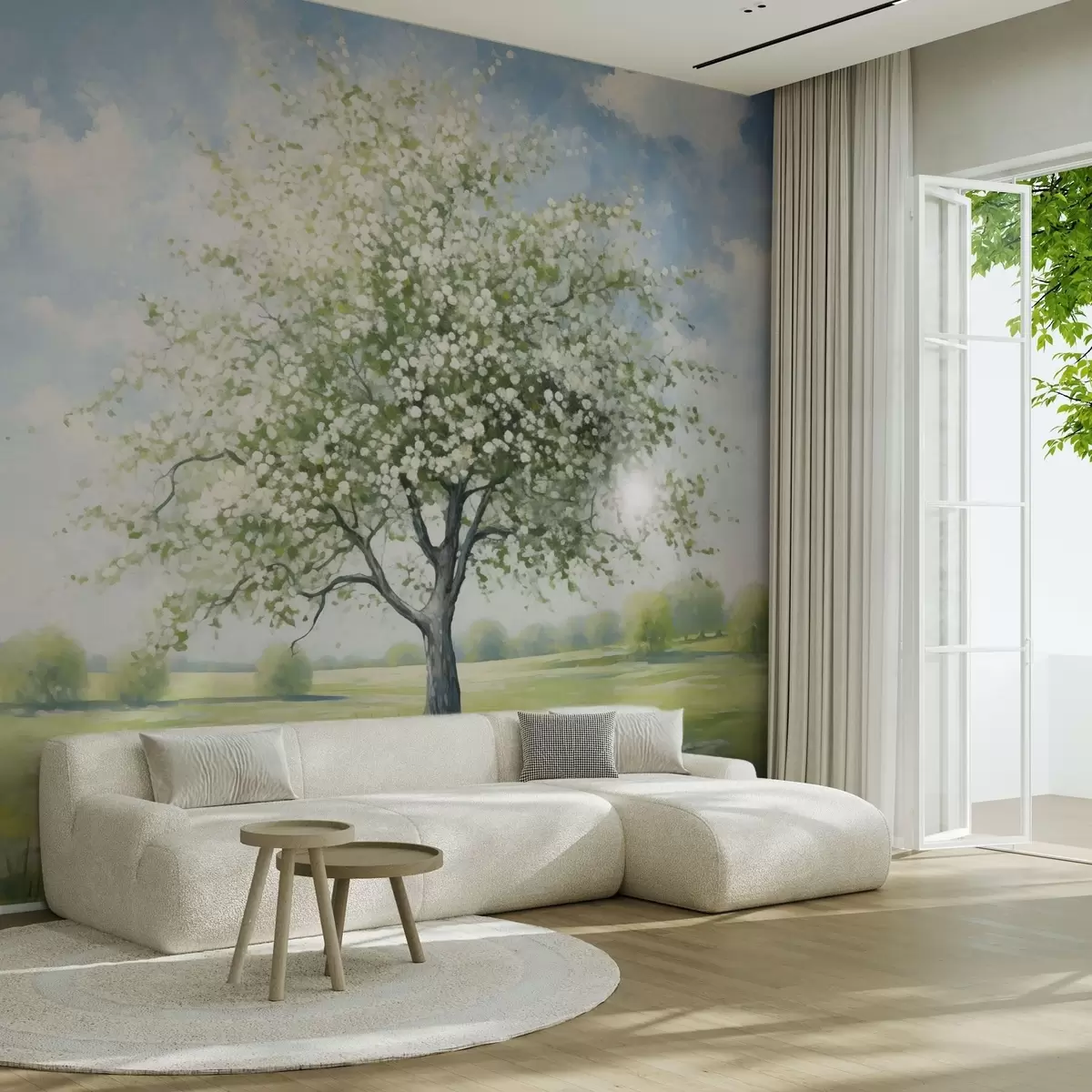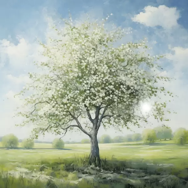 Fototapet Un copac singuratic pe un câmp cu flori albe Nr. w04445