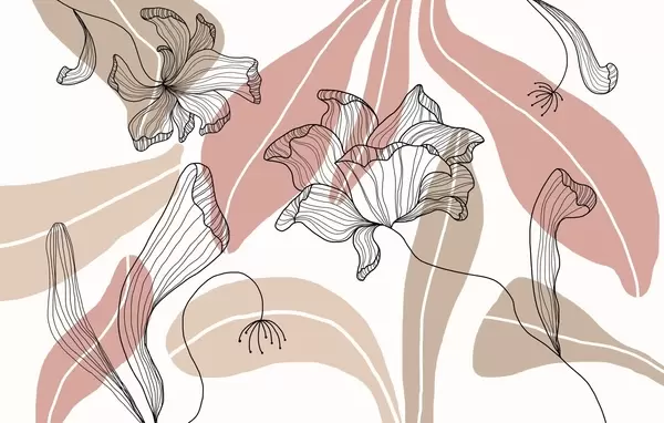 Fototapet frunze și flori abstracte în tonuri pudrate și bej Nr. w04499